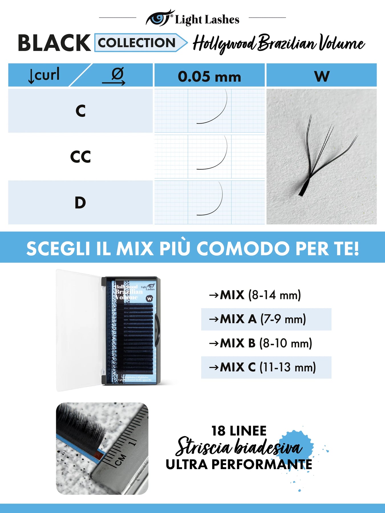 HOLLYWOOD BRAZILIAN VOLUME W C-curl Black Collection 18 strisce